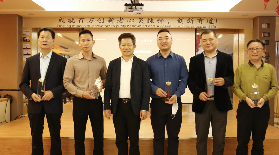 会议的最后,对2021年度做出重要贡献的供应商合作伙伴进行了表彰,分别颁发了优秀供应商5家、优秀战略合作伙伴5家、优秀品牌商10家、质量贡献奖10家、技术创新奖6家、最佳交付保障奖18家、特别贡献奖16家。