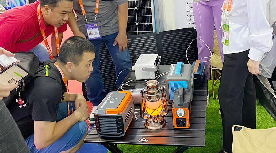 露营的时候想看电影?投影功能安排!想听音乐?AI智能音箱安排!担心电量不够?便携式光伏太阳能板安排!你和你的小伙伴们想同时充电?10台设备同时支持用电安排!这就是本届东博会上PA视讯科技推出的重磅新品——AI便携式储能电源PH2380。