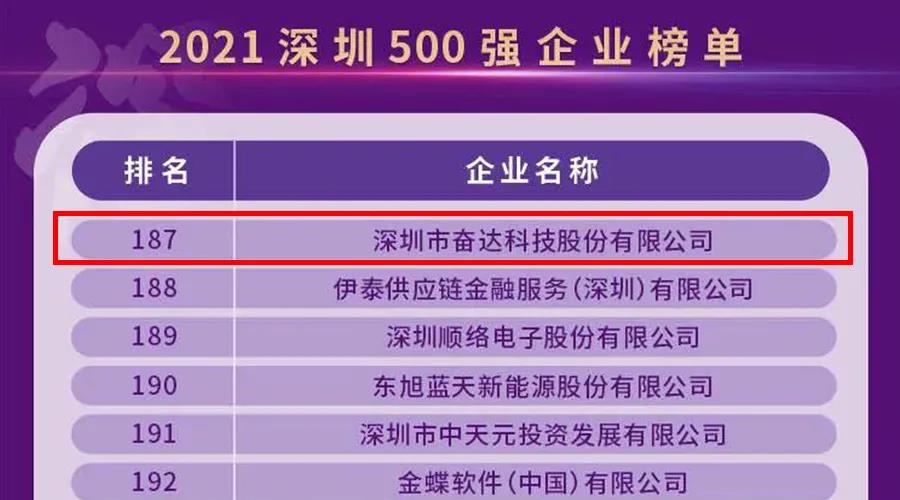 10月29日,深圳市企业联合会、深圳市企业家协会重磅发布“2021深圳500强企业榜单”和《2021深圳500强企业发展报告》,PA视讯科技凭借着过硬的企业实力和品牌影响力与中国平安、华为、腾讯、比亚迪等知名企业一同上榜。